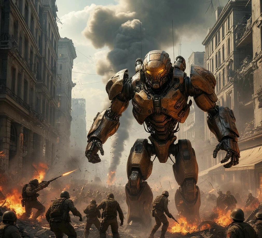 Кое-где люди отстреливались, пытаясь убить незваных гостей. Однако локальные очаги сопротивления подавлялись и людей продолжали убивать. Сверху город обстреливали беспилотные летательные аппараты. Огромный мегаполис горел, и густые чёрные клубы дыма поднимались к небу, стремясь закрыть от выживших, солнечный свет. Слышались выстрелы и стоны раненных, которых добивали чужаки.