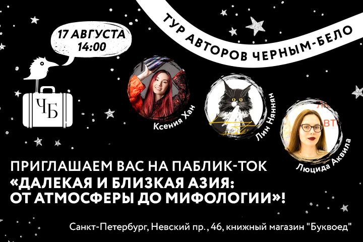 17 августа Ксения Хан, автор цикла «Дракон и тигр» и романа «Лисы округа Хансон», а также авторы Лин Няннян и Люцида Аквила примут участия в паблик-токе на тему «Далекая и близкая Азия: от атмосферы до мифологии».