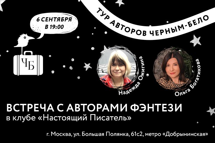 6 сентября Надежда Ожигина, автор книги «Седьмая сестра», и Ольга Богатикова, написавшая «Дом чудной на улице Лесной», примут участие в паблик-токе, где расскажут, как творят свои истории и чем жертвуют ради вдохновения.