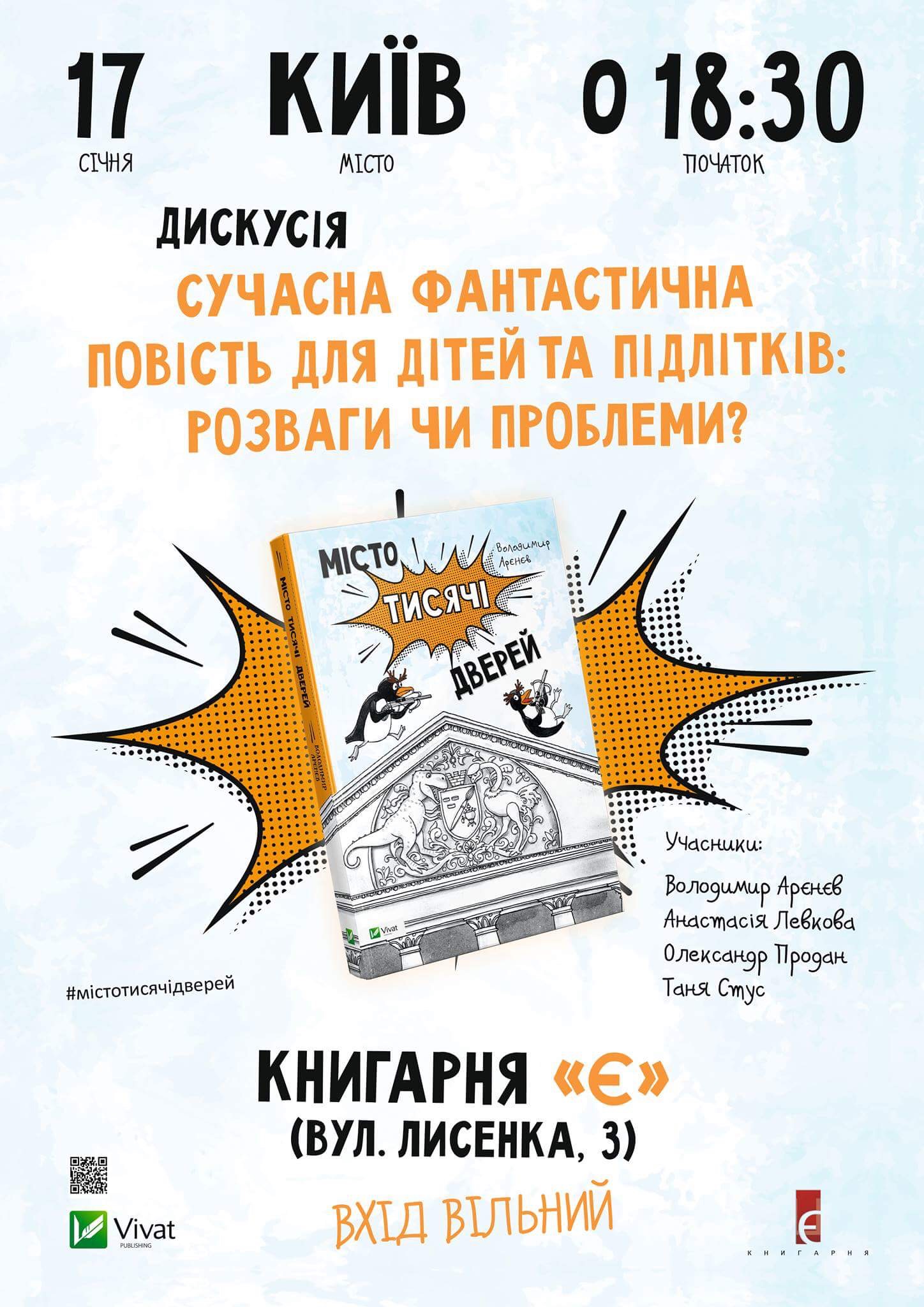 Завтра, 17 января, -- презентация иллюстрированной повести "Город тысячи Дверей". Поговорим о современных фантастических повестях для детей и подростков: о тенденциях, о том, каких книг (в том числе переводных) не хватает.