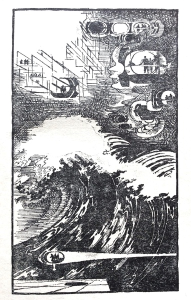 Рисунок к повести Н. Дашкиева "Властелин мира" художника В. Якубича из издания 1955 года.