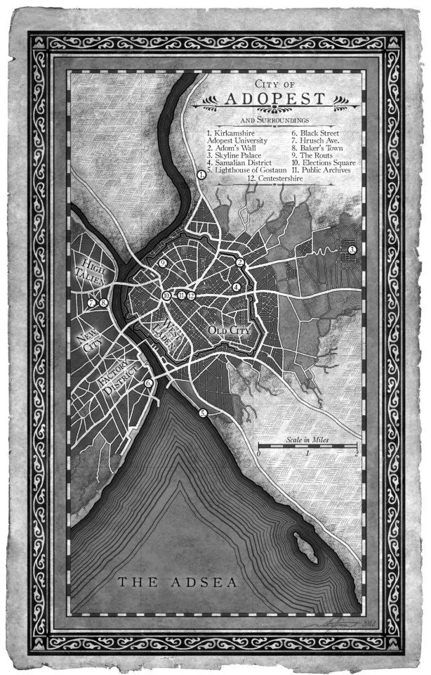 Что касается созданного автором мира, то мы узнаем о нем не больше необходимого минимума. Мы знаем, что помимо Адро есть еще около десятка соседних государств, но практически ничего не слышали о большинстве соседей. Мы видели в действии пороховых магов, но понятия не имеем, кто и когда впервые открыл такие способности пороха. Мы засвидетельствовали казнь монарха, но не видели ни одного министра или другого крупного сановника, а также бургомистра, мэра или члена городского совета. Более того, создается впечатление, что кроме Тамаса и бывшего командующего королевской гвардией в стране и военачальников-то нет нормальных.