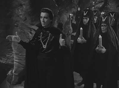 Продюсер и режиссер, которые собираются снимать фильм ужасов, смотрят странный фильм о воскрешении и черной мессе, в котором главную роль играет Карл Йорла (Кристофер Ли).
