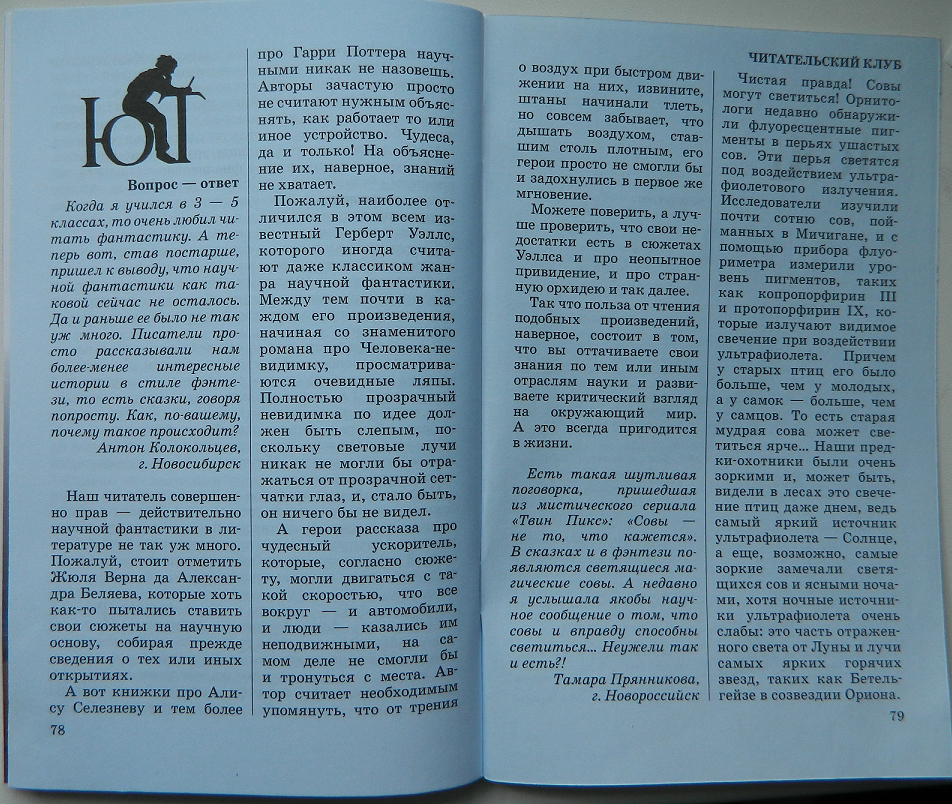 Когда я учился в 3 — 5 классах, то очень любил читать фантастику. А теперь вот, став постарше, пришел к выводу, что научной фантастики как таковой сейчас не осталось. Да и раньше ее было не так уж много. Писатели просто рассказывали нам более-менее интересные истории в стиле фэнтези, то есть сказки, говоря попросту. Как, по-вашему, почему такое происходит? Антон Колокольцев, г. Новосибирск
