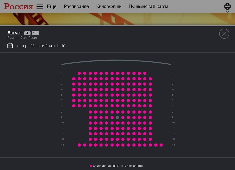 (0) На сеанс "Август" в 11.10. купили билеты 4 человека, плюс работник кинотеатра смотрел. На "Русалочке" на 9:40 — сотня зрителей точно была.