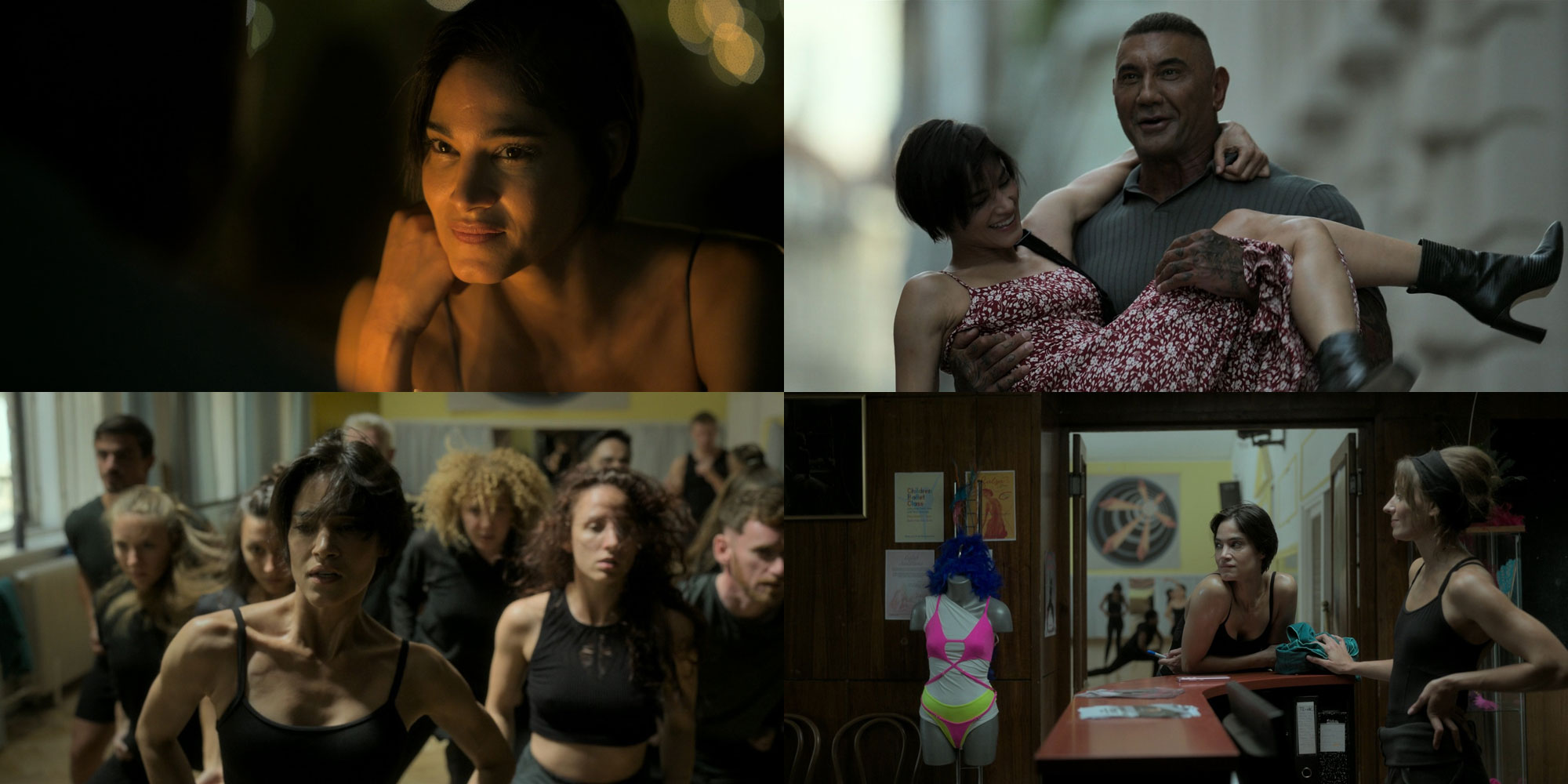 Главную роль в фильме исполняет Дэйв Батиста (громила-невидимка Дракс из кинотрилогии о «Стражах Галактики» Джеймса Ганна и Глоссу «Зверь» Раббан Харконнен из недавней «Дюны: Часть вторая» Дени Вильнева). Актер внушительных габаритов и недюжинного драматического таланта (достаточно посмотреть эпизод с ним в «Бегущем по лезвию 2049» (2017) того же Дени Вильнева) не всегда выглядит впечатляюще в боевых сценах (за редким исключением – как, например, в «Армии мертвецов» (2021) Зака Снайдера, где Батиста прекрасно показал себя и как драматический актер и как актер боевика) и зачастую смотрится беспомощно в сценах комедийных, с которыми куда лучше справляются его бывшие коллеги по рестлингу, а ныне тоже актеры – Дуэйн Джонсон и Джон Сина. Поскольку в «Игре киллера» Батисте досталось и то, и другое, и третье, его роль получилась неровной.
