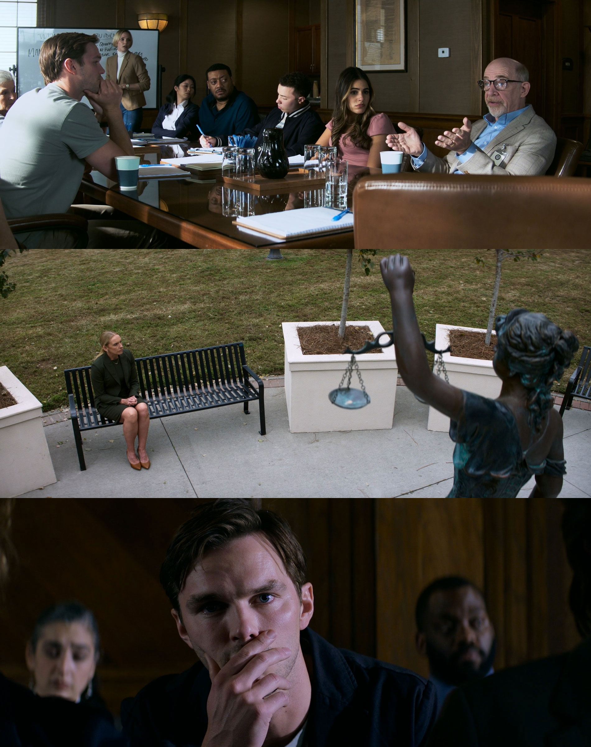 Личные мотивы персонажей, собственное следствие из-за неудовлетворенности официальным, ошибки в суждениях и трагедия, связанная с убийством девушки, расследование которого может привести к загубленной жизни невиновного человека, роднят «Присяжного номер два» с другой выдающейся работой Клинта Иствуда – х\ф «Таинственная река» (2003), номинированным на премию «Оскар» в шести категориях, включая лучший фильм и лучшую режиссуру, и взявшим пару позолоченных статуэток за лучшую мужскую роль (Шон Пенн) и лучшую мужскую роль второго плана (Тим Роббинс). На ту знаковую работу кинорежиссера ориентировался и автор сценария «Присяжного номер два» Джонатан Абрамс, телевизионный и театральный автор, дебютировавший сейчас в полнометражном кино. С учетом правок и пожеланий Иствуда сценаристу удалось успешно совместить повороты сюжета с исследованием персонажей (главных, второстепенных и эпизодических – при этом не устроив мешанину в повествовании из-за обильного числа действующих лиц), их взглядов, выбора и его последствий.