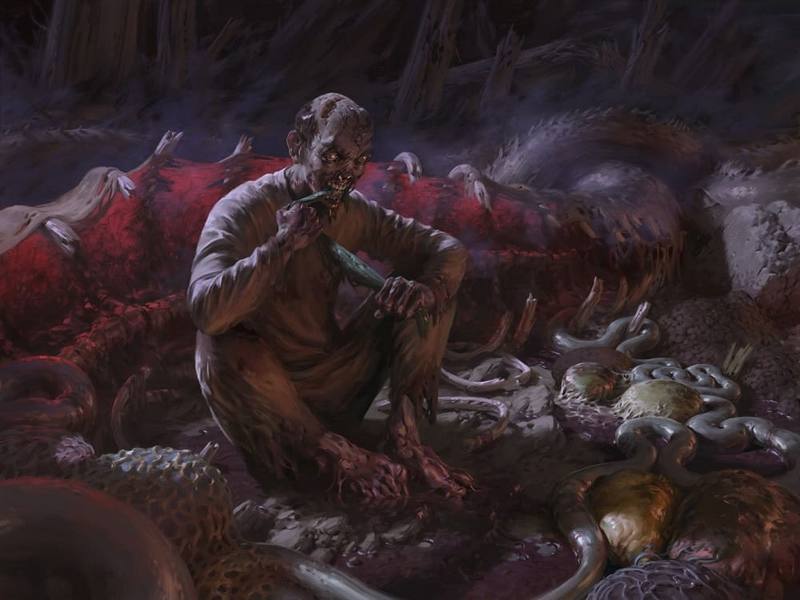 Опыт опроверг моё глупое утверждение о том, что болезнь вызывают кладбищенские миазмы. Я ползал по туннелям упырей; и к моему непреходящему отвращению, одна из этих тварей исцарапала меня когтями. Если бы это было заразно, я бы сейчас завтракал отнюдь не грушами, сыром и фандрагорским вином.