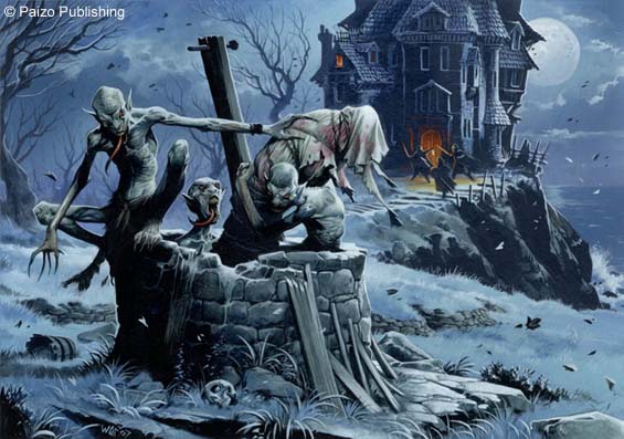 «Гуль или гхоул в переводе с арабского означает любой внушающий ужас объект, который лишает людей возможности пользоваться своими чувствами; в дальнейшем это слово стало синонимом того вида монстров, которые предположительно преследовали их в лесах, на кладбищах и в других уединённых местах. Считается, что они не только разрывают на куски живых, но и выкапывают и пожирают мёртвых».