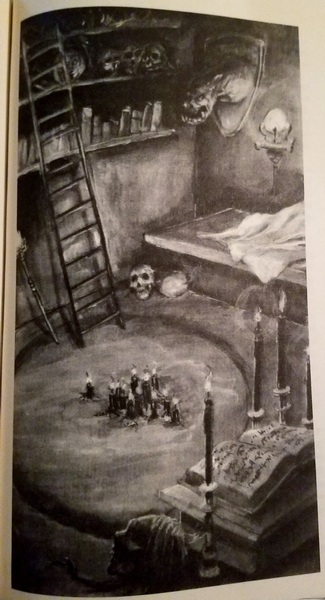 Опасаясь нападения грызущих тварей, которых он разбудил, Фуонса снова повязал платок на голову, опустился на пол перед некромантом и что-то забормотал о демоне, который завладел его языком. Услышав нечеловеческое шипение и фырканье сквозь стук своего лба о паркет, он испугался, что его покровитель и впрямь призвал нечто этакое, но когда осмелился поднять глаза, то увидел, что этот звук издаёт сам Веймаэль, корчась в муках своего странного смеха.
