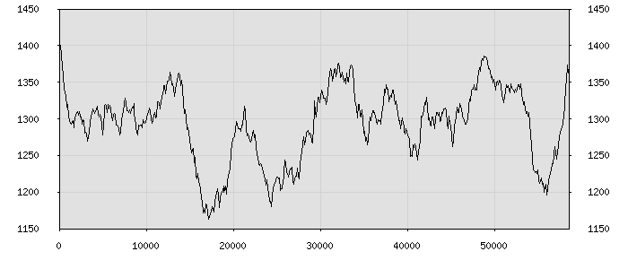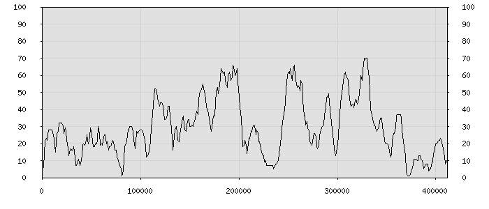 (по горизонтали: счётчик знаков; по вертикали: процент диалогов; размер скользящего окна: знаков, шаг: 1000 знаков) |