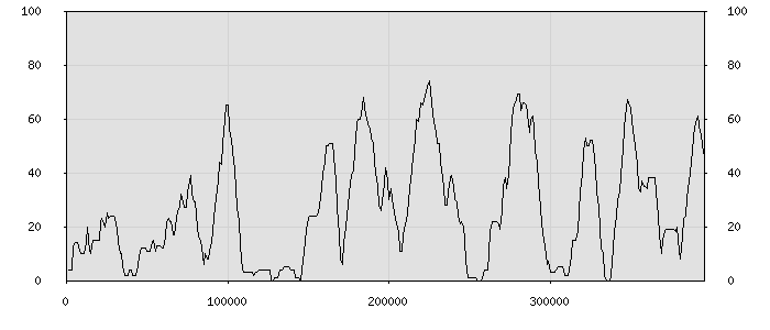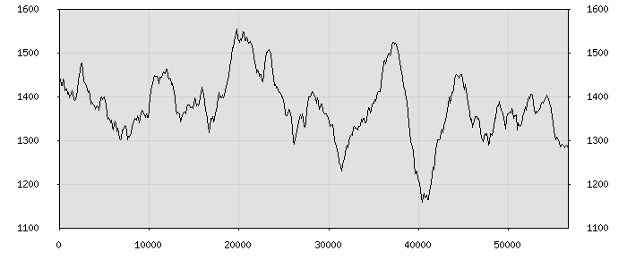(по горизонтали: счётчик знаков; по вертикали: процент диалогов; размер скользящего окна: знаков, шаг: 1000 знаков) |