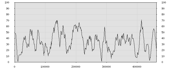 (по горизонтали: счётчик знаков; по вертикали: процент диалогов; размер скользящего окна: знаков, шаг: 1000 знаков) |