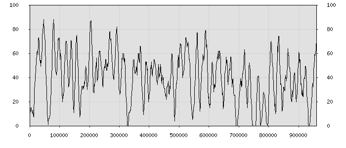 (по горизонтали: счётчик знаков; по вертикали: процент диалогов; размер скользящего окна: знаков, шаг: 1000 знаков) |