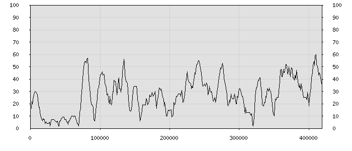 (по горизонтали: счётчик знаков; по вертикали: процент диалогов; размер скользящего окна: знаков, шаг: 1000 знаков) |