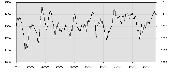 (по горизонтали: счётчик знаков; по вертикали: процент диалогов; размер скользящего окна: знаков, шаг: 1000 знаков) |