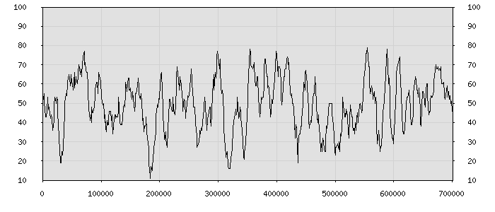 (по горизонтали: счётчик знаков; по вертикали: процент диалогов; размер скользящего окна: знаков, шаг: 1000 знаков) |