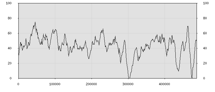 (по горизонтали: счётчик знаков; по вертикали: процент диалогов; размер скользящего окна: знаков, шаг: 1000 знаков) |