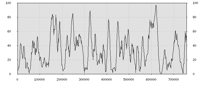 (по горизонтали: счётчик знаков; по вертикали: процент диалогов; размер скользящего окна: знаков, шаг: 1000 знаков) |