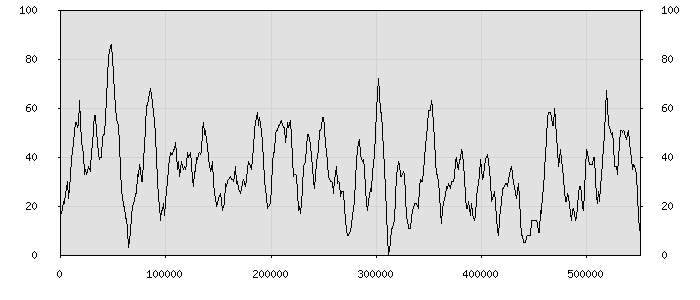 (по горизонтали: счётчик знаков; по вертикали: процент диалогов; размер скользящего окна: знаков, шаг: 1000 знаков) |