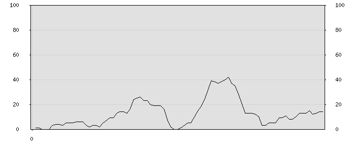 (по горизонтали: счётчик знаков; по вертикали: процент диалогов; размер скользящего окна: знаков, шаг: 1000 знаков) |