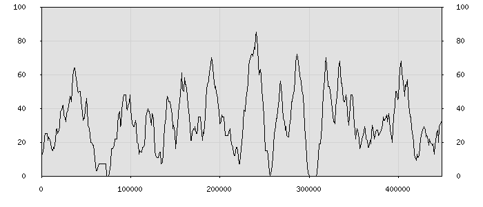 (по горизонтали: счётчик знаков; по вертикали: процент диалогов; размер скользящего окна: знаков, шаг: 1000 знаков) |