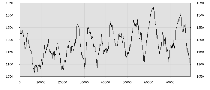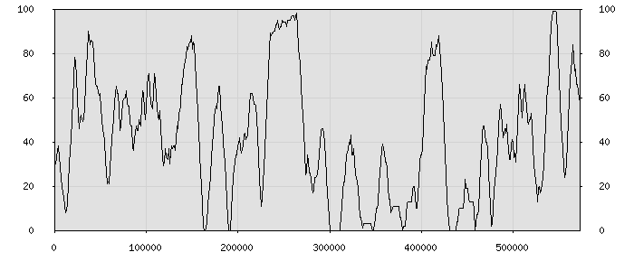 (по горизонтали: счётчик знаков; по вертикали: процент диалогов; размер скользящего окна: знаков, шаг: 1000 знаков) |