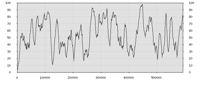 (по горизонтали: счётчик знаков; по вертикали: процент диалогов; размер скользящего окна: знаков, шаг: 1000 знаков) |