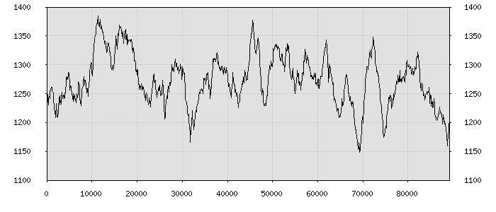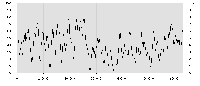 (по горизонтали: счётчик знаков; по вертикали: процент диалогов; размер скользящего окна: знаков, шаг: 1000 знаков) |