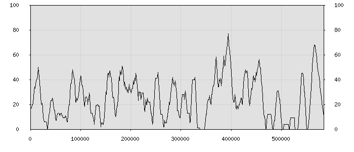 (по горизонтали: счётчик знаков; по вертикали: процент диалогов; размер скользящего окна: знаков, шаг: 1000 знаков) |