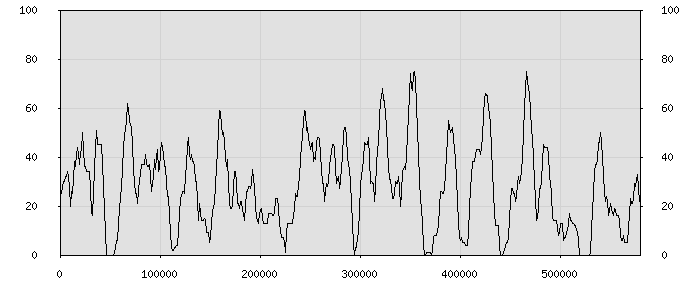 (по горизонтали: счётчик знаков; по вертикали: процент диалогов; размер скользящего окна: знаков, шаг: 1000 знаков) |
