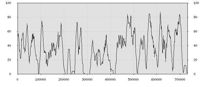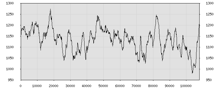 (по горизонтали: счётчик знаков; по вертикали: процент диалогов; размер скользящего окна: знаков, шаг: 1000 знаков) |