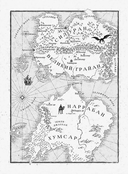 Во-вторых, мир и герои прописаны с любовью. Да, автор не любит убивать своих героев, но все же иногда они погибают... А ведь даже второстепенные вызывают немалую привязанность. Каждый герой, вышедший из-под пера писательницы — личность. Судьба каждого небезразлична в итоге. Что же касается мира — он великолепен. Действие происходит в основном в четырех странах: Грайане, Силуране, Гурлиане и Наррабане. Хотя есть еще третья страна — Ксууранг, представлять которую будет всего одна героиня (но зато какая!). А, чуть не забыл про острова! Эх, хорош мир, велик, красочен и обширен, интересен и многогранен. Страны со своими верованиями, обычаями и культурой. А ведь есть еще и Подгорный мир, волшебный, природу которого даже жители той книжной вселенной не до конца понимают, но благодаря отважным подгорным охотникам нам автор таки приоткроет завесу тайны!