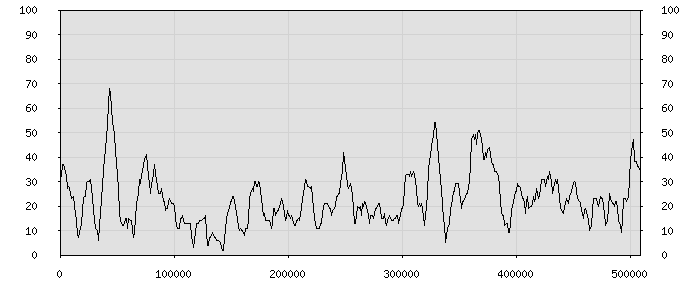 (по горизонтали: счётчик знаков; по вертикали: процент диалогов; размер скользящего окна: знаков, шаг: 1000 знаков) |