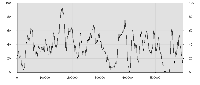 (по горизонтали: счётчик знаков; по вертикали: процент диалогов; размер скользящего окна: знаков, шаг: 1000 знаков) |