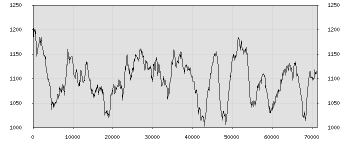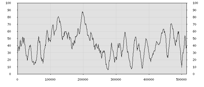 (по горизонтали: счётчик знаков; по вертикали: процент диалогов; размер скользящего окна: знаков, шаг: 1000 знаков) |