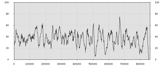 (по горизонтали: счётчик знаков; по вертикали: процент диалогов; размер скользящего окна: знаков, шаг: 1000 знаков) |
