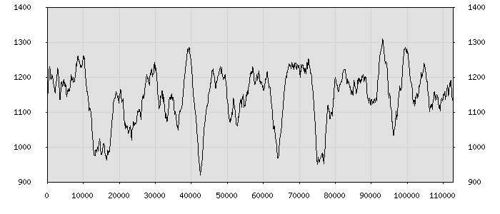 (по горизонтали: счётчик знаков; по вертикали: процент диалогов; размер скользящего окна: знаков, шаг: 1000 знаков) |