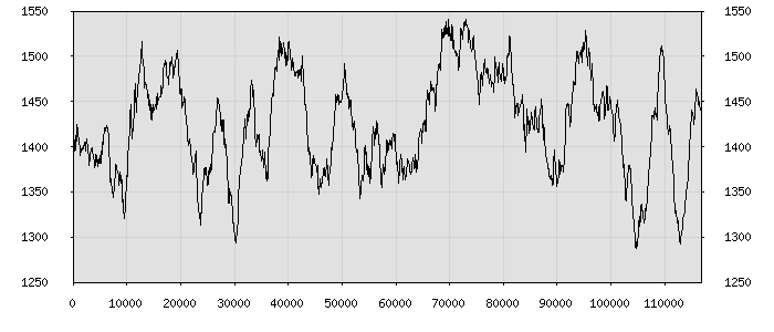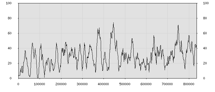 (по горизонтали: счётчик знаков; по вертикали: процент диалогов; размер скользящего окна: знаков, шаг: 1000 знаков) |