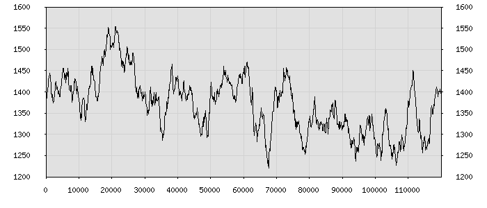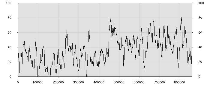 (по горизонтали: счётчик знаков; по вертикали: процент диалогов; размер скользящего окна: знаков, шаг: 1000 знаков) |