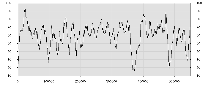 (по горизонтали: счётчик знаков; по вертикали: процент диалогов; размер скользящего окна: знаков, шаг: 1000 знаков) |