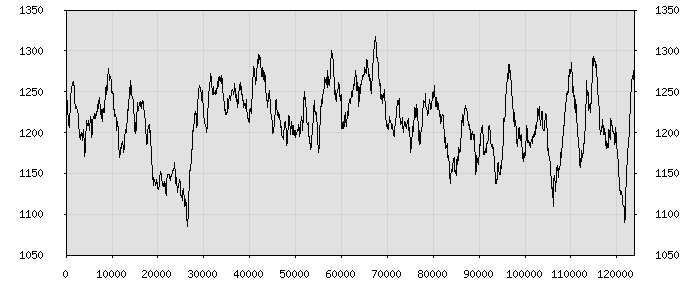 (по горизонтали: счётчик знаков; по вертикали: процент диалогов; размер скользящего окна: знаков, шаг: 1000 знаков) |