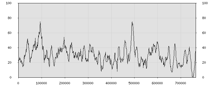 (по горизонтали: счётчик знаков; по вертикали: процент диалогов; размер скользящего окна: знаков, шаг: 1000 знаков) |