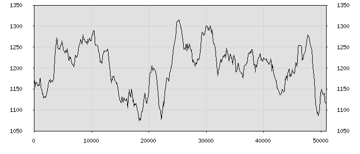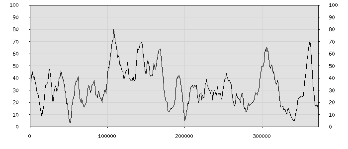 (по горизонтали: счётчик знаков; по вертикали: процент диалогов; размер скользящего окна: знаков, шаг: 1000 знаков) |