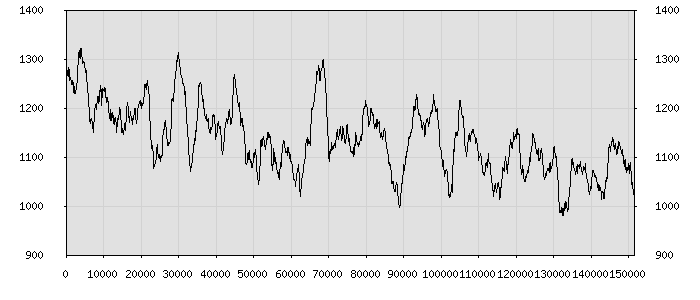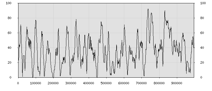 (по горизонтали: счётчик знаков; по вертикали: процент диалогов; размер скользящего окна: знаков, шаг: 1000 знаков) |