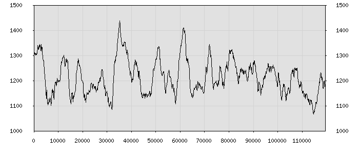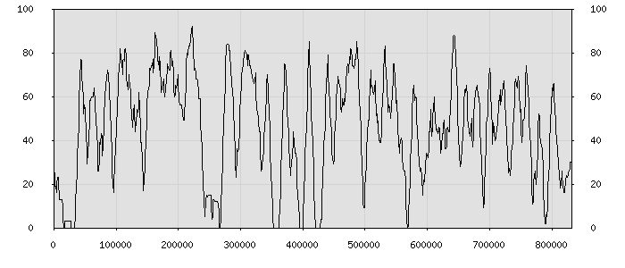 (по горизонтали: счётчик знаков; по вертикали: процент диалогов; размер скользящего окна: знаков, шаг: 1000 знаков) |