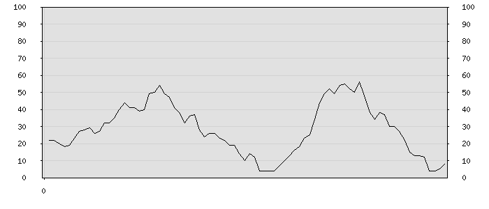 (по горизонтали: счётчик знаков; по вертикали: процент диалогов; размер скользящего окна: знаков, шаг: 1000 знаков) |