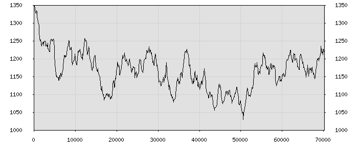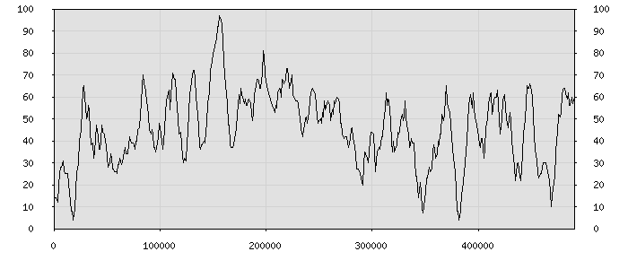 (по горизонтали: счётчик знаков; по вертикали: процент диалогов; размер скользящего окна: знаков, шаг: 1000 знаков) |