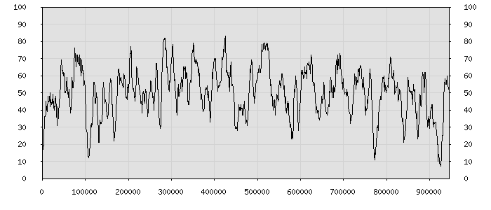 (по горизонтали: счётчик знаков; по вертикали: процент диалогов; размер скользящего окна: знаков, шаг: 1000 знаков) |