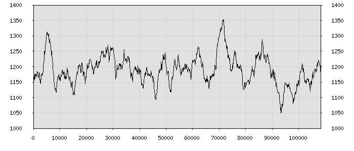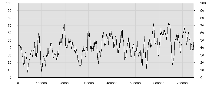 (по горизонтали: счётчик знаков; по вертикали: процент диалогов; размер скользящего окна: знаков, шаг: 1000 знаков) |
